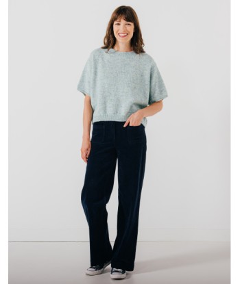 Deze blauwe ribfluwelen broek is een comfy klassieker met een moderne twist. De losse, rechte fit zorgt voor een relaxte look, terwijl de opgezette zakken (klein vooraan, groot achteraan) net dat tikkeltje extra geven. De tailleband heeft riemlussen en een sluiting met rits en knoop. Praktisch en stijlvol, easy to wear, elke dag opnieuw.